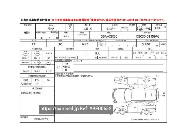 ![Used 2013 AT toyota passo DBA-KGC30 Image[2]](https://d1og64tg0ubvon.cloudfront.net/refno-cars/2026/0131/5212910/003.jpg?w=95&ts=1770322524)